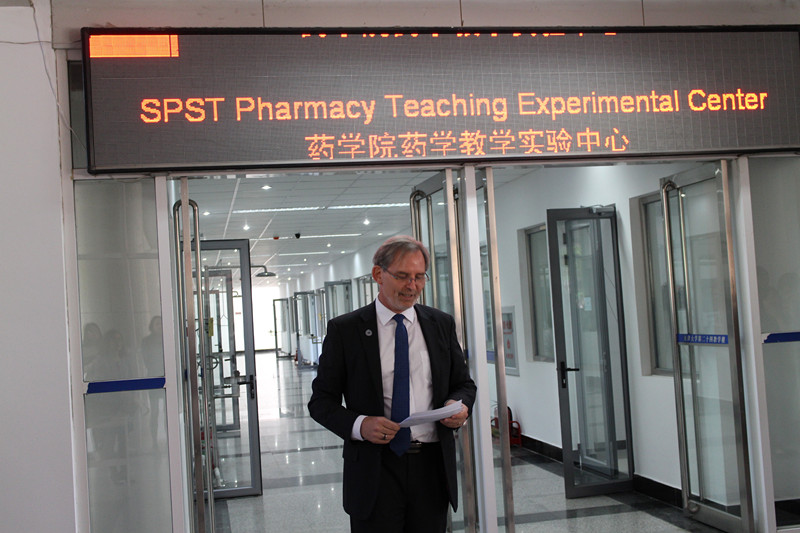 王宝林在随后的致辞中对药学院的国际化改革建设给予极高的肯定。他指出,2014年药学院入选国家外专局和教育部联合推出的“中国高校国际化示范学院”,2年来,药学院在引进高水平人才、构建国际化课程体系等方面大胆创新,进行了一系列国际化改革,成效显著。他希望药学院能够发挥国际化学院的示范作用,成为我市教育系统管理国际化的一面旗帜。