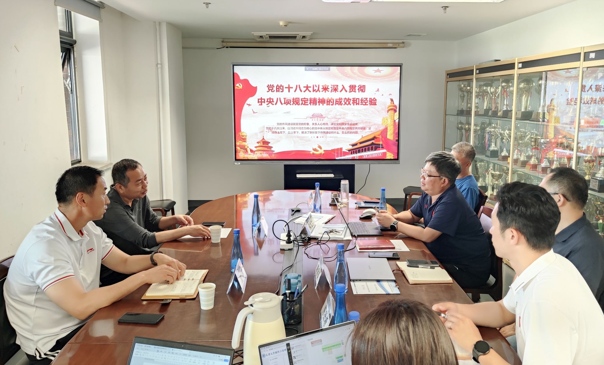 学习活动中,吴金克同志围绕“举旗定向、领航掌舵,习近平总书记关于深入贯彻中央八项规定精神的重要论述生动彰显我们党的强大真理力量和强大人格力量”“党中央带头、全党行动,有力有序深入贯彻中央八项规定精神”“一子落地、满盘皆活,以作风建设新成效赢得人民群众信任拥护”“在实践中总结、从总结中提升,积累的经验弥足珍贵”等四个方面回顾了党的十八大以来深入贯彻中央八项规定精神的重要意义、取得的成效经验。同时,从政治、经济、社会、文化和国家治理等多维度,强调了八项规定对推动党和国家事业发生历史性变革的关键作用。此外,他还介绍了天津大学体育部和场馆中心的基本情况,回顾了天南大开展的足球、排球、棋牌等体育交流活动,对长期以来的支持表示感谢。