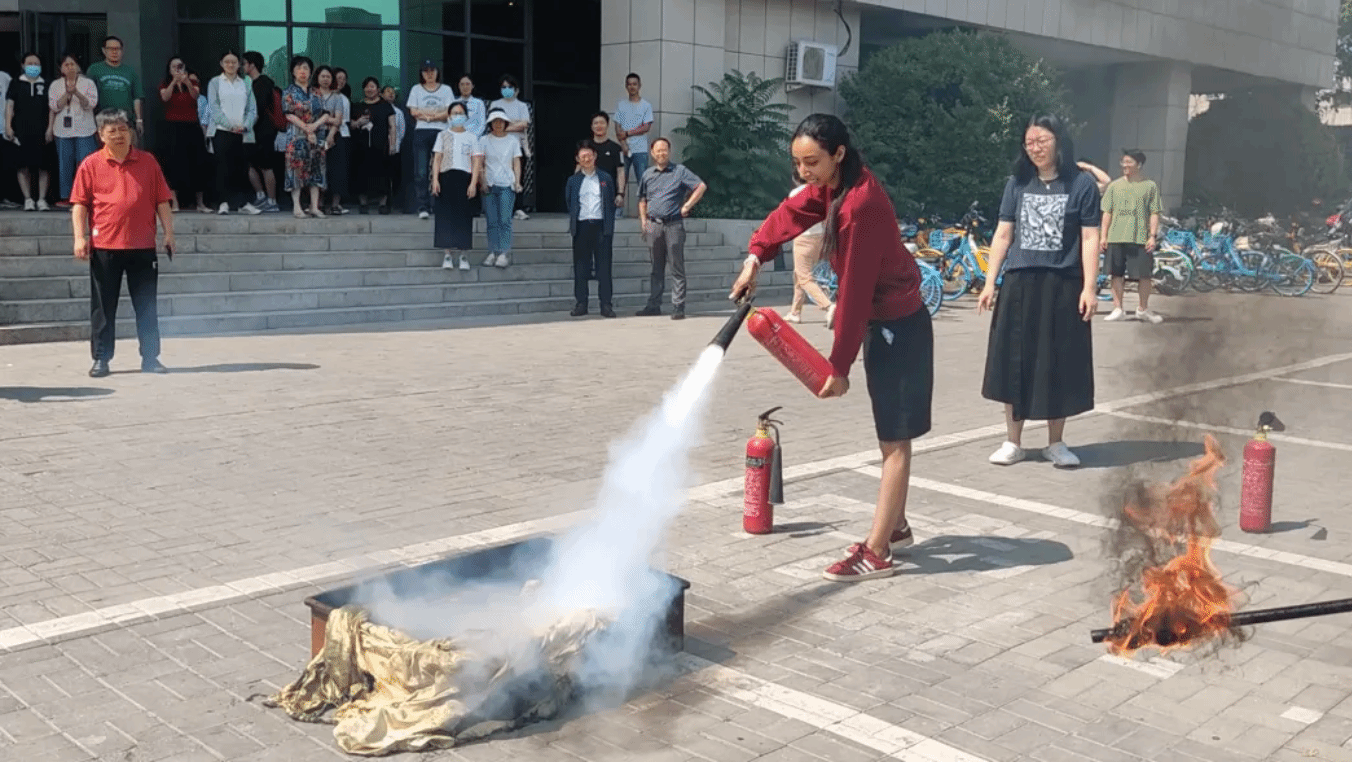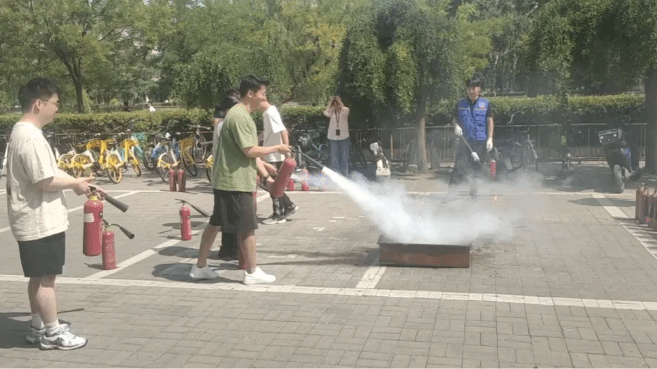 疏散演练后,保卫处防火科的专业老师现场指导师生开展灭火器实操培训,详细讲解干粉灭火器和二氧化碳灭火器的区别及使用方法。“一提、二拔、三握、四压”,在专业指导下,图书馆工作人员、物业工作人员以及在场学生踊跃参与,分组进行了灭火实操,20余人次成功扑灭模拟火源,掌握了初期火灾处置技能。