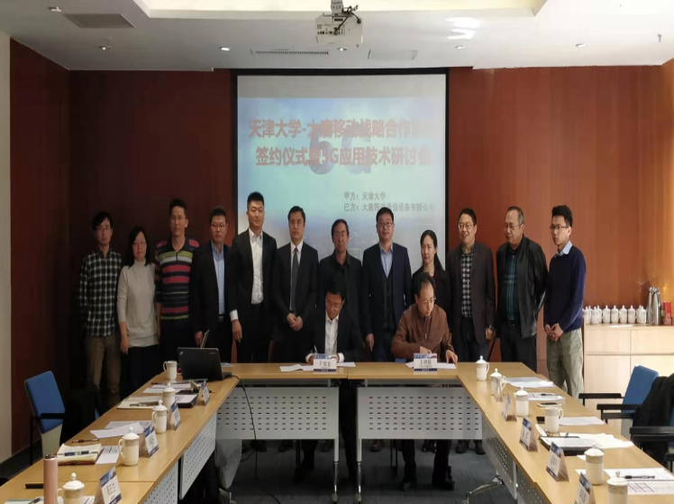 本站讯(通讯员 马天明)3月7日上午,“天津大学-大唐移动战略合作协议签约仪式暨5G应用技术研讨会”在天津大学北洋园1895大楼第四会议室举行。天津大学副校长王树新教授和大唐移动通信设备有限公司(以下简称大唐移动)副总裁于继龙先生,代表双方签署战略合作协议。双方将依托天津大学无人驾驶交叉研究中心,就5G技术和智能网联技术,在前沿技术探索、联合人才培养以及成果转化等方面开展战略合作。大唐移动将支持天津大学建立5G技术试验基地,这标志着国内高校首个5G应用示范基地建设正式启动。大唐移动通信设备有限公司市场总监陈博、华北大区总经理朱泽冲、天津办事处主任刘福长、战略市场部周正兰、移动通信事业部田亮以及机械工程学院院长王天友教授、机械学院秦旭达教授、毕凤荣教授、谢辉教授和精仪学院蔡怀宇教授、计算机学院朱鹏飞副教授、电信与自动化学院曹佳乐博士后等师生30余人参加签约仪式,仪式由天津大学无人驾驶交叉中心负责人谢辉教授主持。