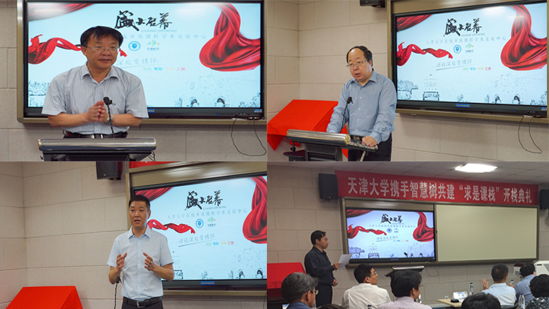 本站讯(通讯员 车熙)5月11日,由天津大学与智慧树网合作共建的“求是课栈”在天津大学卫津路校区第25教学楼B303举行开栈仪式,推进在线开放课程建设与应用。天津市教委高教处处长连忠锋、副处长刘冰,天津大学教务处处长张凤宝,智慧树网副总裁李威,以及宣传部、网络教育学院负责人,各学院教学院长,在线课程负责人等出席仪式。揭牌仪式由教务处副处长赵伟主持。