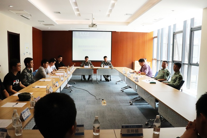 天津大学副校长张凤宝会见了任长军一行,代表学校对任长军的到访表示欢迎。任长军还与天津大学退伍士兵学生代表、国防生代表、应征入伍学生代表、国旗护卫队学生骨干代表等进行了座谈。天津市南开区武装部部长薛铁军、政委车兴东、军委后勤保障部驻天津大学选培办主任汪命锁以及南开区武装部工作人员出席并全程聆听了报告。报告会由校党委学工部副部长柳丰林主持。