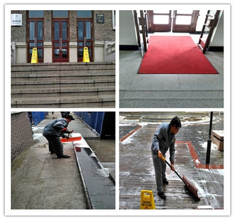 降雪后,物业监管科组织物业公司按照预案要求和工作安排,对所管辖楼宇门前台阶处、周边及25、26楼地下车库出入口处的降雪及时进行清扫,局部进行撒盐,快速融化积雪,且为防止夜间温度过低,地面结冰,当天下午进行了二次撒盐。