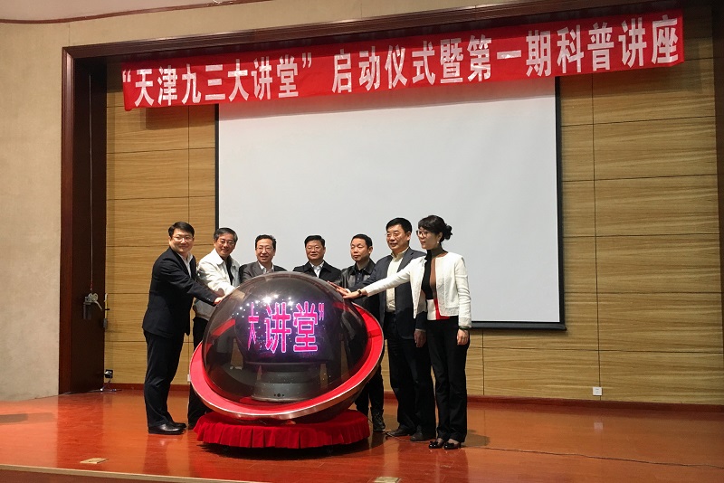 出席活动的领导、嘉宾在大家的掌声中,共同启动触摸球,标志着“天津九三大讲堂”正式启动并开讲。