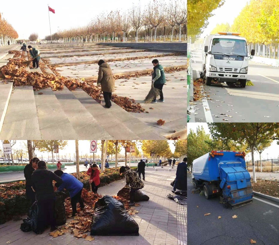 11月27日上午,物业工作人员全员出动,采取人工、机械协同作业的方法,明确清扫、装袋、清运分工,先将落叶集中成堆,再统一堆放至各路段的落叶堆积地点,最后由清运车辆运走进行处理。夕阳西下,落叶清理完毕,落日下整洁的北洋园更显静谧和美丽。