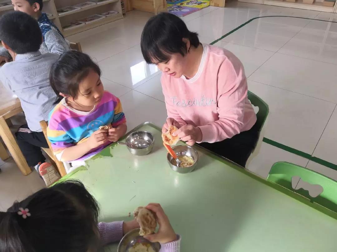 我园新老校区幼儿园同时开展陪餐制度。园长走进班级,和孩子们共同用餐,询问孩子们还喜欢吃什么美食?并向孩子们介绍吃什么食物最有营养。让就餐真正成为孩子们一日生活中一件轻松、美好的事情。
