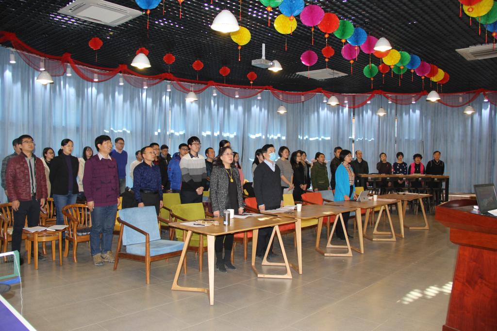 杨冬副书记宣读会议流程以及各支部述职要点,之后全体参会人员起立奏唱国歌,接下来进入各党支部书记的述职环节。