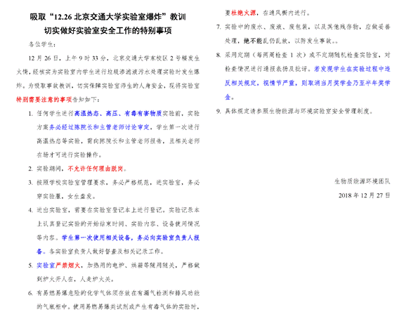 附图:吸取“12.26北京交通大学实验室爆炸”教训切实做好实验室安全工作的特别事项