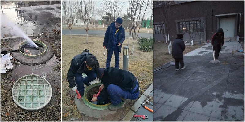 16时左右,物业人员日常巡查发现此处自来水涌出流淌十余米。物业人员当机立断,立即报备,第一时间启动应急预案。5分钟后,工程人员抵达现场,经过检查,确定为绿化管道阀门爆裂。16时8分,工程人员将跑水处阀门关闭,止住跑水。16时13分,抢修材料、工器设备陆续到位,工程人员进入管井内部,对破裂管道及阀门进行了更换。16时25分,管道恢复供水。最后,物业人员将抢修现场清洁干净,恢复原貌。尽管身处寒风冬季,物业人员依旧不畏艰苦,仅用时30分钟便完成了抢修。