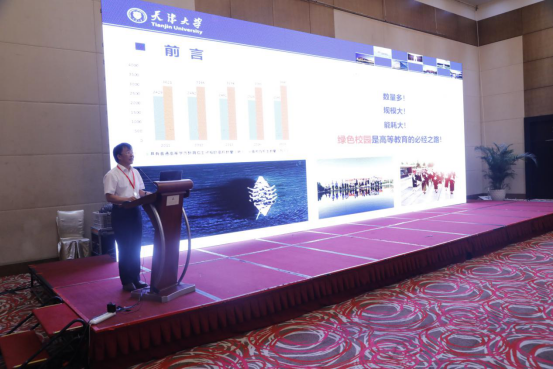 张凤宝做大会报告《绿色发展理念下绿色校园建设的实践与思考》。他指出,绿色校园建设是高等教育可持续性发展的必经之路,天津大学高度重视校园建筑和节能运行工作,十年来学校一直秉持节约理念,积极开展绿色实践。天津大学北洋园校区从一开始就以打造国家示范性绿色校园为目标,高起点规划、高质量建设、高效能管理。在创建绿色校园的过程中,不但节省能源、资源,也便于学校管理,更为学生在校期间的学习和生活提供了良好的环境,是全员育人、全方位育人、全过程育人的重要载体。绿色校园建设在规划、建设、运营等方面都积累了一些实践经验,我们有义务把校园这个绿色循环系统研究透,不断总结经验,为国家战略目标的实现提供支持,为整个社会的绿色发展提供参考。