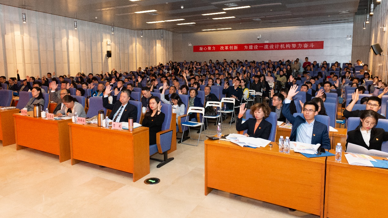 大会的主题是:深入学习贯彻党的十九大精神,以习近平新时代中国特色社会主义思想为指导,紧跟学校“双一流”建设战略目标,加强价值引领、凝心聚力、改革创新,为建立现代企业治理结构,建设一流设计机构努力奋斗!