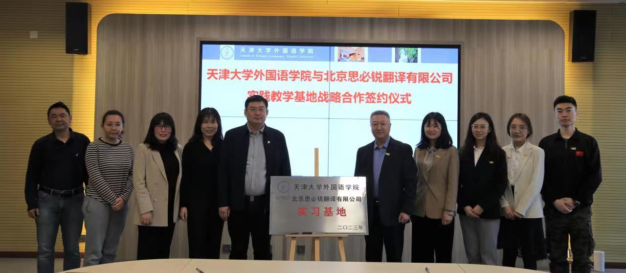 本站讯 3月1日上午,外国语学院同北京思必锐翻译有限公司共建实践教学基地战略合作签约仪式在天津大学北洋园校区33楼290会议室举行。外国语学院主持工作副院长王立松、翻译硕士教育中心执行主任邬丽娜和武玉莲、翻译硕士教育中心老师殷世宇以及北京思必锐翻译有限公司总经理许立群、资源管理总监马丽莹、培训部经理刘雅堃、质检部经理尕松永措、总经理助理杨超等出席了会谈并参加了签约仪式。