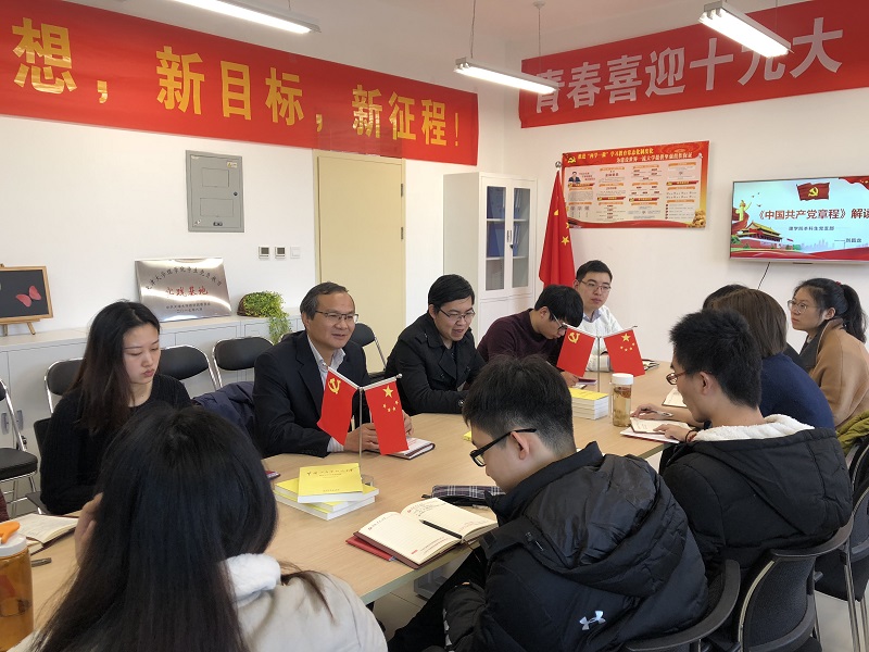 本站讯(通讯员 荣渤焜)12月7日,理学院党委书记刘昌龙走进本科生党支部讲党课。刘昌龙与本科生党支部的学生党员同学一起,围绕“不忘初心,牢记使命,学习十九大精神”这一主题进行了深入的学习交流。