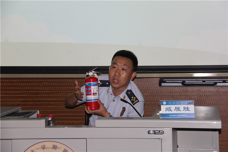 学府街办事处张儒文主任在发言中对在场的领导及老师们说:消防安全需全民提高重视,尤其我们的服务对象是学生和患者,他们更需要我们尽全力去守护,本次活动的举办说明了天津大学对消防安全工作的重视,希望与学校各级领导和老师们共同努力,对消防安全工作常抓不懈,建设更加安全、和谐的校园。