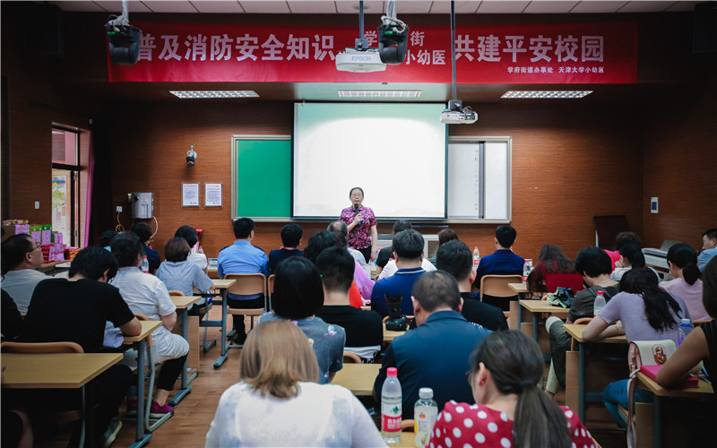 本站讯(通讯员 郑炎琼 董奕杉)为普及消防安全知识,增强附小、幼儿园、校医院的消防安全意识,提高防火、灭火及自我保护的能力,进一步强化校园消防安全管理责任。6月18日下午,小幼医工作部联合南开区学府街道办事处在天津大学附属小学电化教室举办“普及消防安全知识,共建平安校园”知识讲座活动。天津大学校长助理张力新、学府街党工委副书记王海云、学府街办事处副主任张儒文、学府街社区警务队副队长李强、南开区防火检查指导科科长臧雁胜、南开区消防救援支队政治办主任潘慧强、天津大学小幼医工作部部长、党委书记赵翠云、小幼医工作部副部长、党委副书记刘津、天津大学附属小学、幼儿园、校医院领导及小幼医消防安全员60余人出席了本次活动。