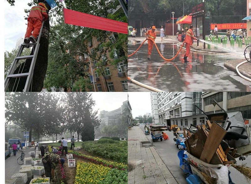 在开学来临之际,为顺利、圆满地完成迎新任务,校园环境管理科在九楼前花带栽植了一万余株百日草、鸡冠花、孔雀草、太阳花、一串红五个品种的草花。在校区内悬挂彩旗、桥头旗和欢迎新同学横幅,在火车站设立新生服务站等;迎新当天调配专人负责整理校园环境,全天候进行保洁,对重点部位加大保洁力度,确保路面整洁无杂物。