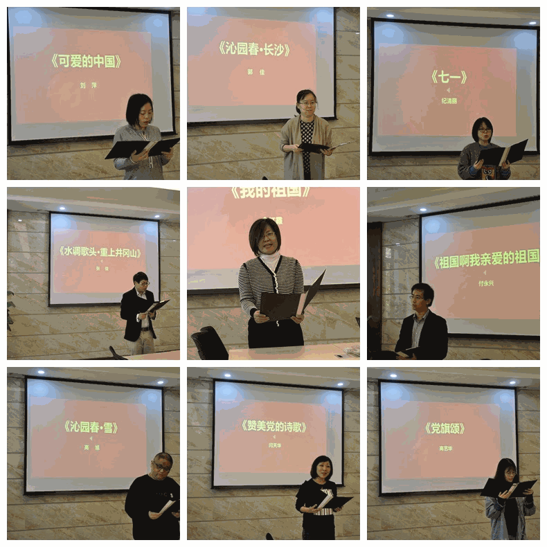 机关党支部的同志们积极参与活动,提前做了精心准备。经过认真筛选及排练,《祖国啊我亲爱的祖国》、《赞美党的诗歌》、《党旗颂》、《沁园春•长沙》等十余首作品在活动中精彩呈现,所选篇目主题鲜明、内涵深刻,诵读人精神饱满、感情真挚,活动现场气氛热烈、高潮迭起。