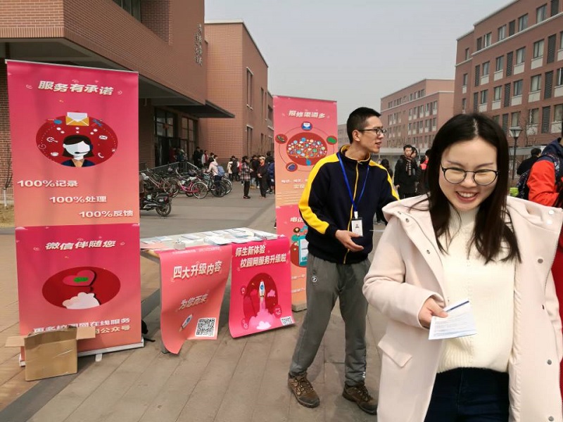 为了更好地对此次活动进行宣传,让师生们更容易了解我们的服务升级内容,信网中心于2018年3月12日至13日在北洋园校区学一、学四食堂,卫津路校区学四食堂前进行了宣传推广活动,向师生们发放近6000份宣传册及信网中心服务卡片。