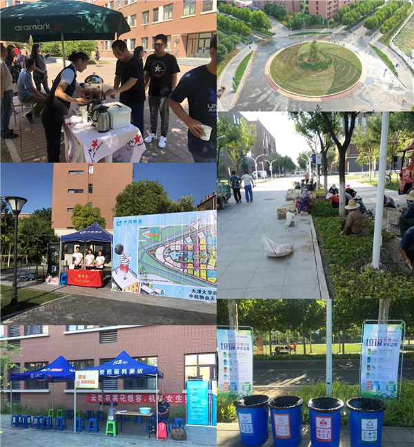 北洋园校区,物业管理办公室携手物业公司、绿化公司,全方位投入力量,营造贴心服务氛围和优美校园环境。工程人员在开学初陆续完成了楼宇外墙、基础设施等全面的检修。在北门转盘、西沽中路等处,重新铺设了绿化草皮、栽种花卉。加大对校园各处的巡视力度和清扫频次,维护整洁优美的校园环境。在太雷广场增设了数个大型垃圾桶,并张贴了垃圾分类标识,放置垃圾分类、节能宣传的易拉宝,积极向新生宣传垃圾分类和节能意识。在迎新区域及主干道路口,设置10余个服务台,提供校园地图、饮用水、应急药箱等物品,客服人员热情、耐心地为新生解答疑惑,提供指引服务。由于新生大件行李较多,物业专门组织“迎新专用电瓶车”等帮助新生搬运行李。宿舍楼下,物业搭建了专门区域供新生家长休息,持续对周边区域进行巡视,保障新生入住的安全。