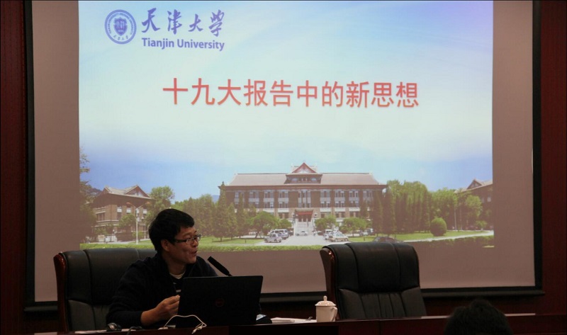 本站讯(通讯员 刘衡)10月31日,一堂特殊的《马克思主义基本原理》思政课在化工学院谢克昌报告厅开讲,化工学院2016级本科生邀请天津大学马克思主义学院孙利副教授为同学们带来题为《十九大报告中新思想》的专题讲座。本次活动由化工学院2016级本科生年级主办,化工学院本科生2016级化工专业3班、5班,过控专业2班,化工学院本科生2017级化工专业5班,精仪学院本科生2016级生物医学工程专业2班,材料学院本科生2016级功能材料1班的170余位同学参加本次讲座,化工学院学生工作办公室部分辅导员参加了学习。