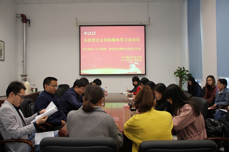 马克思主义学院举办了“学习党的十九大精神,做坚定的青年马克思主义者”活动,学院领导班子、专业教师和2016、2017级硕士研究生认真参加了学习交流。