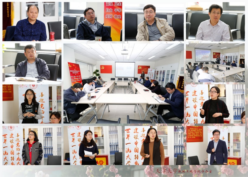 知识,参与发言讨论。刘东志说,中国的十九大是全世界关注的焦点,尤其是习近平总书记的报告,更是振奋人心,描绘了社会主义新时代的发展蓝图,吹响了向中华民族伟大复兴的奋进号角。刘东志与支部党员们一同观看了十九大视频剪切集锦,并与大家分享自己的学习体会。刘东志结合天津大学“兴学强国”的使命与当前“双一流”建设的任务,鼓励全体党员勠力同心、砥砺奋进。
