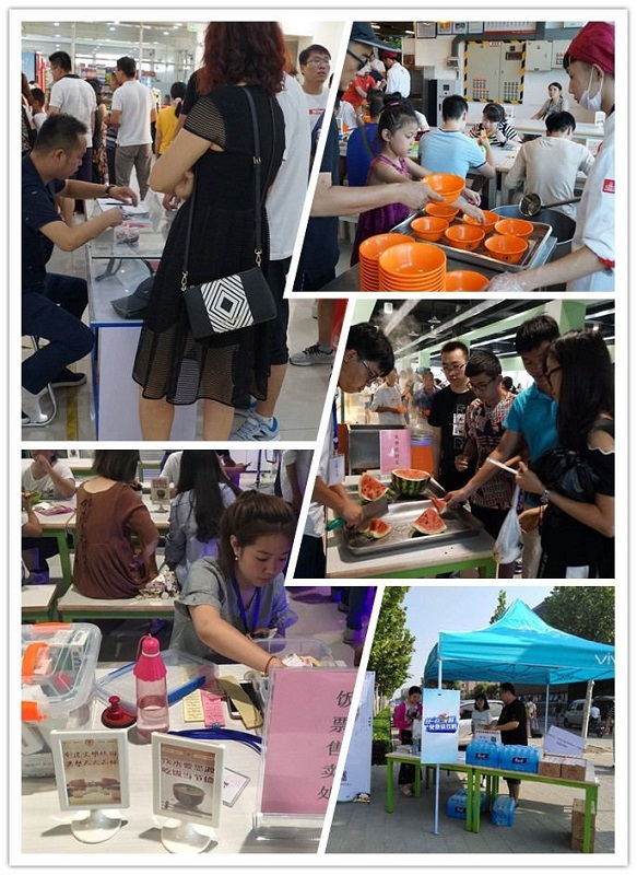 新学期调整了食堂的饮食结构,在保证高中低档菜充足供应的基础上,食堂添加了具有地方特色的风味小吃,推出来自全国各地的不同菜系,尽量照顾来自全国各地同学的口味。部分新生还没有完全熟悉校园,不会使用饭卡,每个食堂专门设立经理接待处,耐心为学生解说。有新生不知道吃什么,他们也会耐心地给出自己的建议。天气炎热,食堂还提供免费解暑药品和晕车药。食堂打开空调,就餐大厅凉爽舒适;准备充足免费绿豆汤和西瓜,供学生和家长们解渴消暑;膳食中心还为新生和家长们准备水和饮料,为热火朝天的新生报到带来一丝清凉。