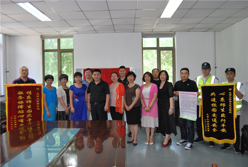 本站讯(通讯员 王冬)隐患就是事故,安全重于泰山。校园交通安全一直是困扰广大师生家长的“老大难”问题。如何能将交通安全隐患彻底根除需要标本兼治。天津大学推行校园“高峰岗”,护卫师生出行安全。6月16日,小幼医党总支书记赵翠云、副书记刘津,附小、幼儿园有关同志来到保卫处,代表小幼医全体教职工对保卫处多年来坚持设立“高峰岗”护卫师生安全表示感谢,并向保卫处全体教职工赠送锦旗与感谢信。