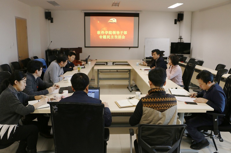 本站讯(通讯员 王旭)2017年1月9日,软件学院领导班子召开2016年度专题民主生活会。全体班子成员结合“两学一做”学习教育,对照《关于新形势下党内政治生活的若干准则》和《中国共产党党内监督条例》,针对分院领导班子在思想政治素质、工作作风、谋划发展等方面存在的突出问题,开展批评与自我批评,认真查摆问题,深刻剖析思想根源,明确努力方向和改进措施,切实加强作风建设,推动分院工作发展。校督导组教师李秀民出席会议,会议由党委书记花建锋主持。