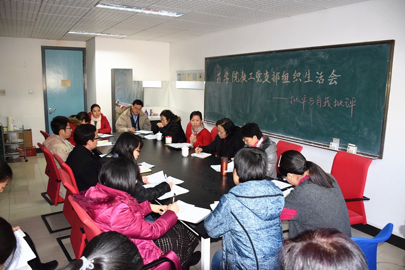 本站讯(通讯员 刘源)12月23日,结合“两学一做”学习教育安排,药学院教工党支部召开全体党员自评及互评组织生活会。会议由药学院党委委员、教工党支部书记王征主持,药学院“两学一做”专题教育督导员、原档案馆馆长常辽华同志莅临指导。