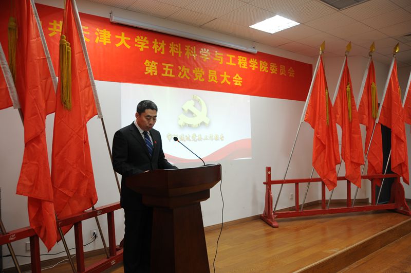 会议在嘹亮的国歌声中拉开帷幕,在审议通过大会议程(草案)之后,材料学院党委书记刘秀国同志代表第四届党委会向大会作了题为《凝心聚力改革创新 为实现材料学院跨越式发展而努力奋斗》的工作报告。本次大会是在北洋园校区召开的第一次学院党员大会,也是我院向一流材料学科迈进的重要一步。报告从人才培养、师资队伍建设、学科建设、新利18网址登录