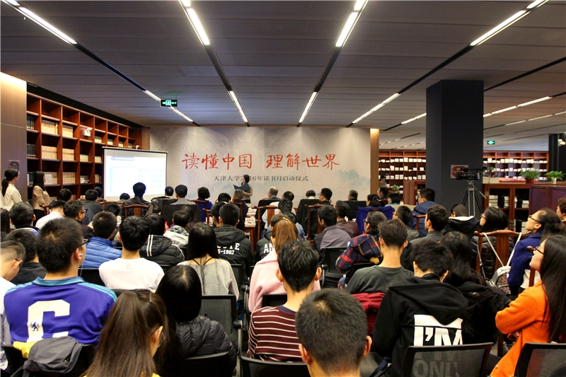 本站讯(记者 朱宝琳 学生记者 马曌堃 摄影 赵习钧 张昊)11月10日下午,“读懂中国 理解世界”2016年天津大学“读书月”启动仪式在北洋园校区郑东图书馆日新书斋举行。启动仪式发布了天津大学2016年度学生阅读情况报告和“读书月”活动安排,师生代表济济一堂共话“阅读与成长”。