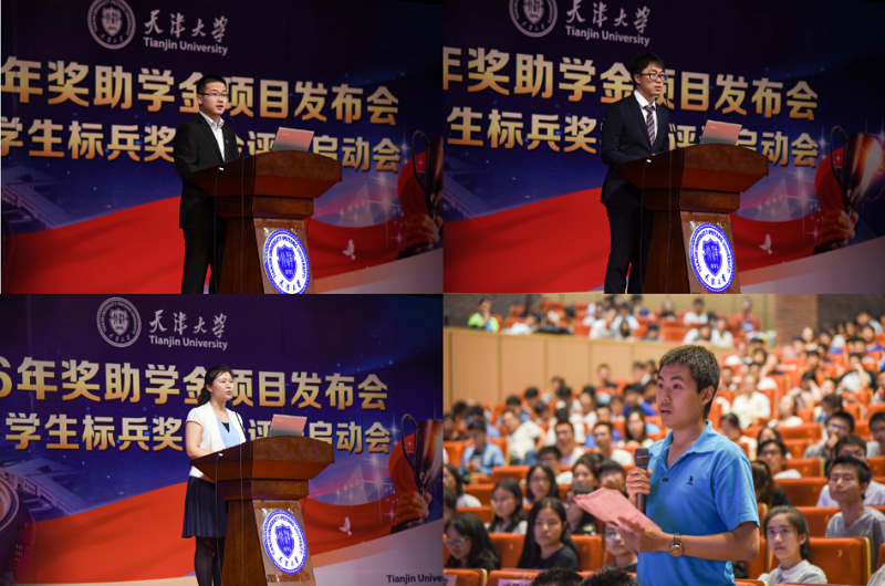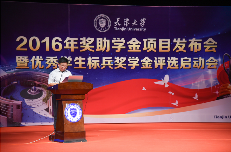 随后,潘晓睿详细介绍了天津大学优秀学生标兵奖学金的设立背景,她指出,优秀学生标兵奖学金为天津大学最高荣誉的在校生奖学金,始设于2008年,由学校领导、校友企业、爱心校友等陆续注资设立。至今已评选出60名品学兼优、素质突出的优秀学生。2016年起,优秀学生标兵奖学金的奖励金额增加至每人每年3万元,同时增设提名奖,每人每年1万元。潘晓睿表示,优秀学生标兵奖学金不仅是校级奖学金中的最高荣誉,更凝聚着学校领导和社会各界对我校学子的殷切期望和广泛赞誉。最后,潘晓睿宣布2015-2016年度天津大学优秀学生标兵奖学金评选启动。