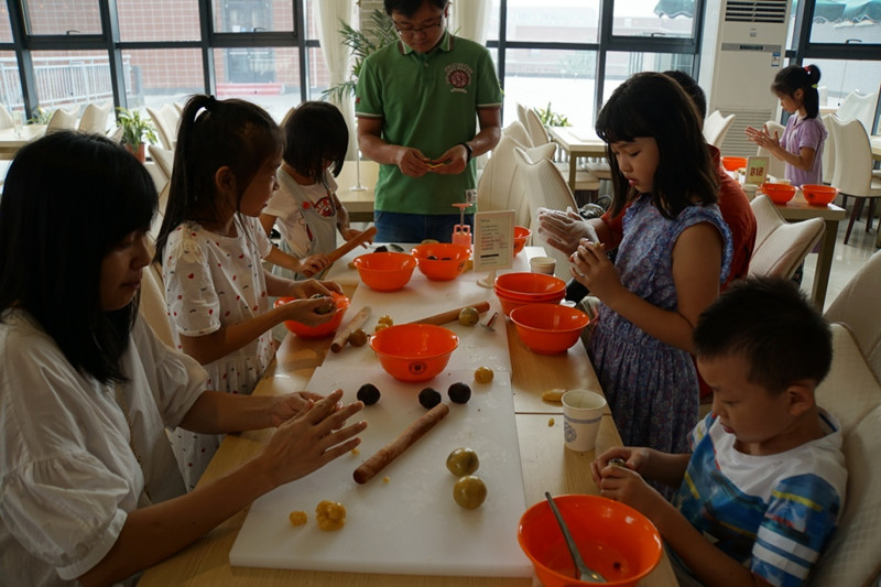 西饼屋的丁师傅带领大家认识制作月饼的各种材料和工具,示范制作月饼的整个过程。各个家庭领取食材后,相互合作,共同制作美味月饼,这不光对在场的孩子们是一次全新的体验,许多家长们也是首次近距离接触这一传统工艺。在家长和孩子的努力下,一盘盘精美的月饼呈现出来。