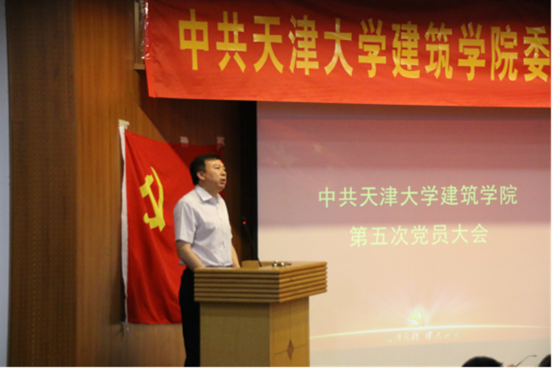 本站讯(通讯员 王卫娜)6月12日,中共天津大学建筑学院第五次党员大会在建筑学院六层华润置地报告厅召开。天津大学党委副书记、副校长舒歌群,组织部部长马春有,建筑设计规划研究总院党委书记程万海应邀出席大会。大会由建筑学院党委副书记曾鹏主持,学院在职教工党员、离退休党员、学生党员代表及民主党派、无党派人士代表160余人参会。