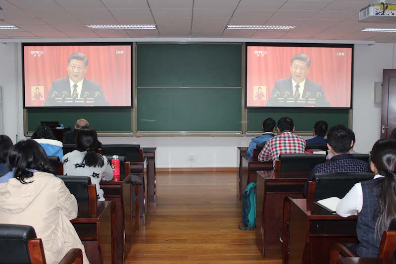 本站讯(通讯员 刘丽丽)10月18日,中国共产党第十九次代表大会在人民大会堂隆重开幕。作为真学实做论坛的重要环节,数学学院党委组织师生代表在北洋园校区32教学楼A207报告厅和卫津路校区6教学楼112室分别收看了十九大开幕会直播。中国科学院院士陈永川、数学学院领导班子、师生党员代表和学生入党积极分子代表一起学习了习近平总书记代表十八届中央委员会所作的报告。