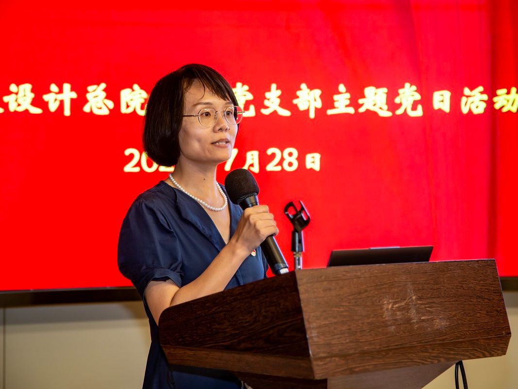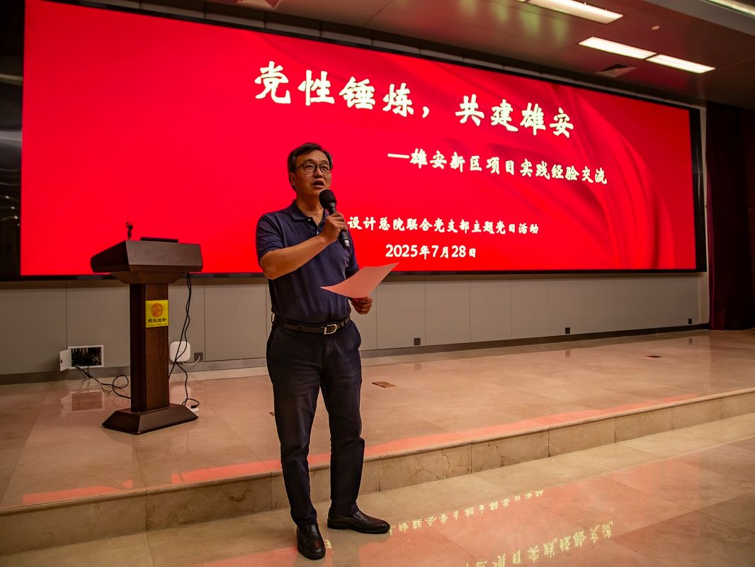 党委委员、副总经理张雅卓作了题为“党性锤炼,共建雄安”的主题报告。报告中,她首先介绍了雄安新区的发展历程和建设现状。随之以详实的案例为依托,回顾了自2017年起,总院400余名设计师积极投身雄安新区建设的奋斗征程。其间,她特别介绍了张月景、王梦凡、韩玉涛等同志长期扎根驻场、无私奉献的感人事迹。通过这些生动实例,既彰显了将党性教育深度融入重大国家战略的鲜活实践,更充分展现了总院设计师勇立潮头的探索精神与迎难而上、破解难题的责任担当。