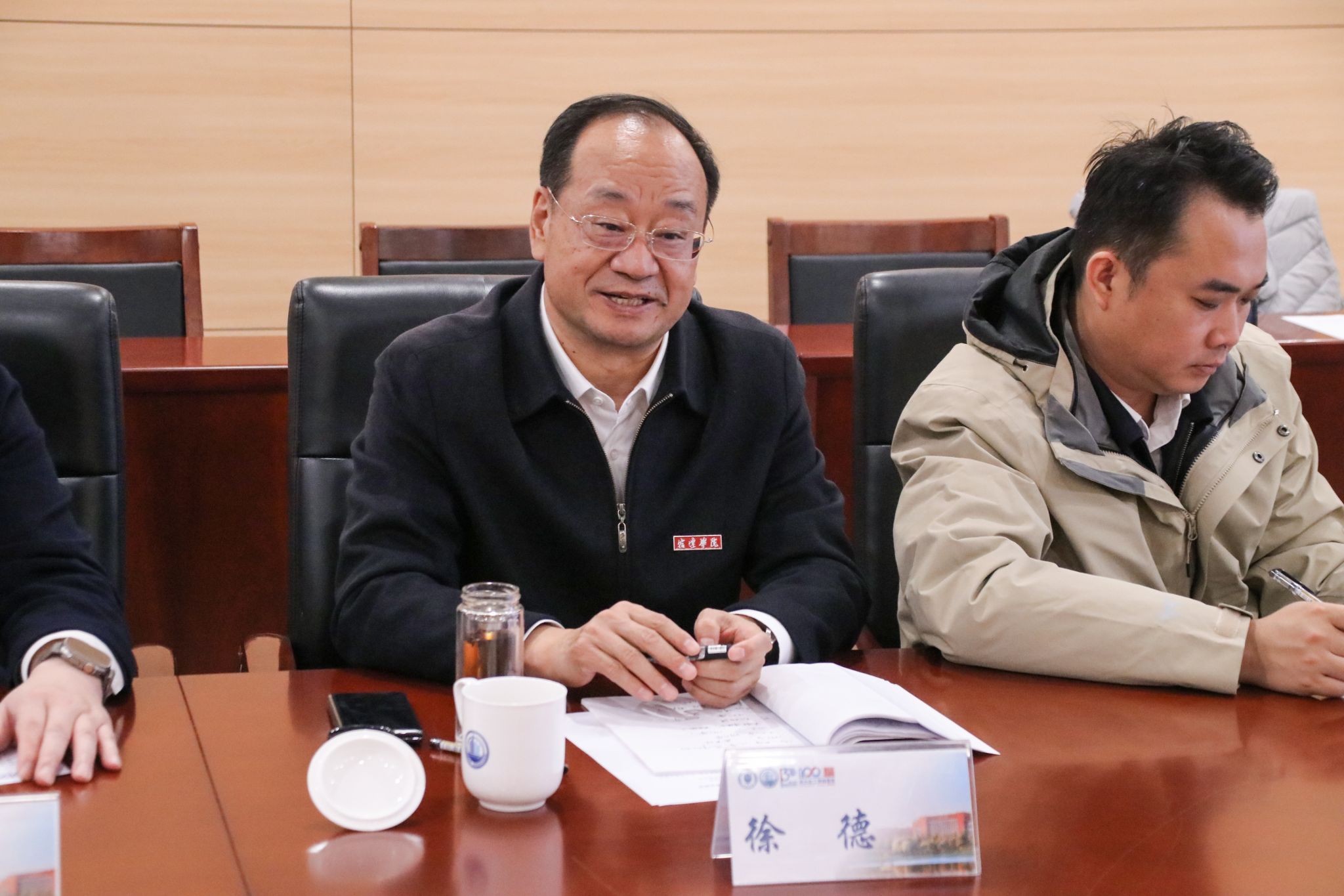 本站讯 10月23日,宿迁学院党委书记徐德带队来访天津大学化工学院并开展座谈交流会,并做人才招引政策宣讲。天津大学党委常委、宣传部部长杨欢出席会见宿迁学院学校领导。宿迁学院党委副书记侍旭,党委常委、副校长童毛弟,天津大学化工学院党委书记汪怀远,副院长刘国柱,党委副书记赵书航,挂职副院长顾飞出席本次座谈会。两校相关部门负责同志及我院博士生代表参加。