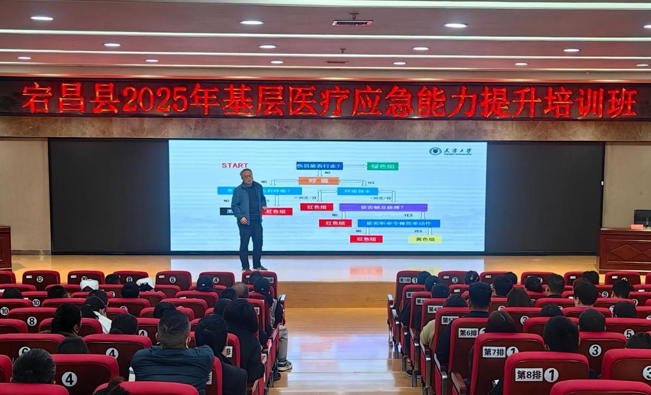 为深入贯彻落实党的二十届四中全会精神和习近平总书记给天津大学全体师生重要回信精神,推进健康中国、平安中国建设,助力宕昌筑牢基层医疗应急“第一道防线”,切实提高基层防灾减灾救灾和重大突发公共卫生事件处置保障能力。2025年11月15日-16日,由天津大学医学部卫生应急学院组织、宕昌县委县政府承办的“2025年基层医疗应急能力提升培训班”顺利开班。宕昌县副县长赵洪浩主持此次培训,宕昌县政府党组成员、二级调研员苏继成,天津大学卫生应急学院党委书记庞博出席开班仪式并作动员讲话。培训特邀天津大学卫生应急学院名誉院长侯世科、院长樊毫军、应急医学研究院副院长范斌、院长助理董文龙等专家现场授课。本次培训班覆盖全县26个县直部门、25个乡镇、34个县乡各级医疗卫生机构,培训应急工作分管领导干部、基层干部职工、医护专业人员、蓝天救援队队员共300余人。