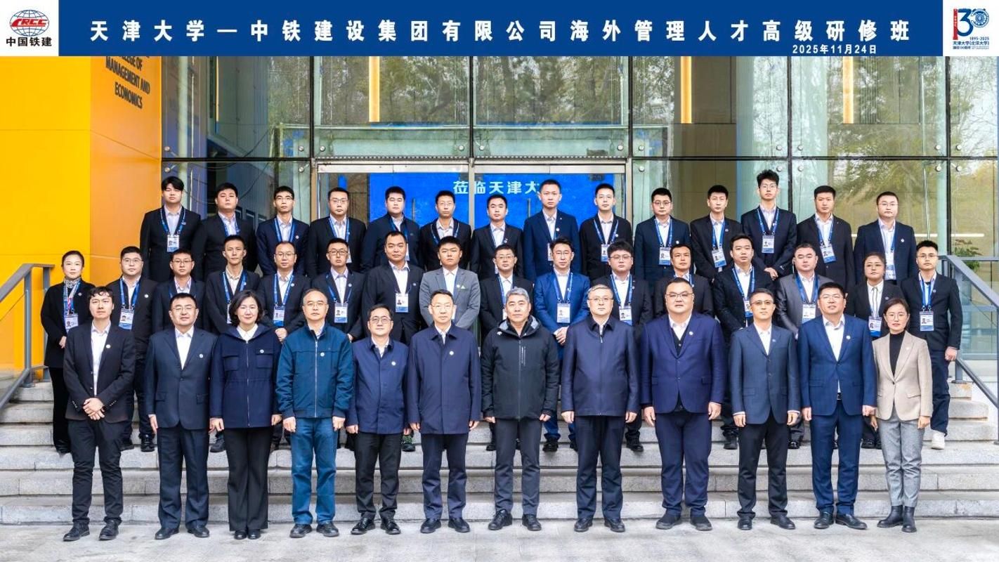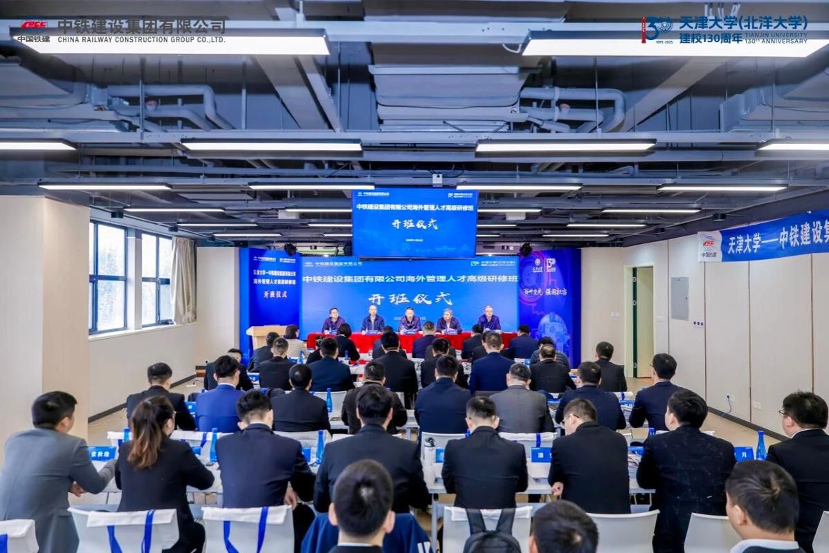 11月24日,中铁建设集团有限公司海外管理人才高级研修班在天津大学顺利开班。中铁建设集团有限公司总经理、党委副书记赵向东,党委副书记、工会主席王宏斌,党委委员、副总经理朱小刚,天津大学校长助理刘秀国、管理与经济学部副主任杨宝臣等领导出席开班仪式,仪式由国际工程管理学院项目主任张静敏主持。