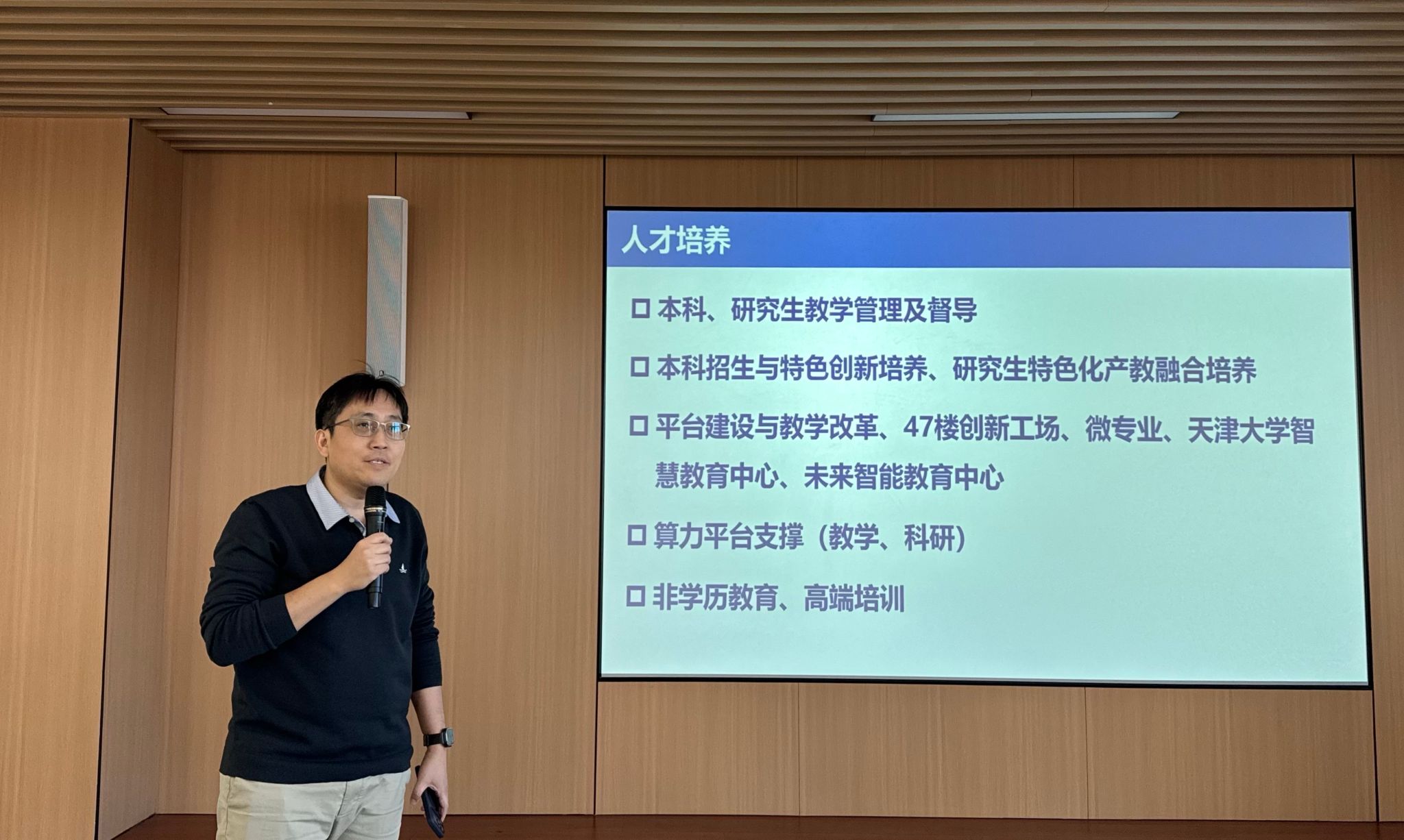王赞围绕“坚守育人初心、服务国家需求”作动员讲话。他表示,在学校提出的天津大学人工智能学院要加强自身内涵建设、推动智能科学与技术学科高水平建设,强化学院与多学科交叉赋能作用,数智赋能卓越人才创新实践能力培养、有组织攻关人工智能领域重大新利18网址登录