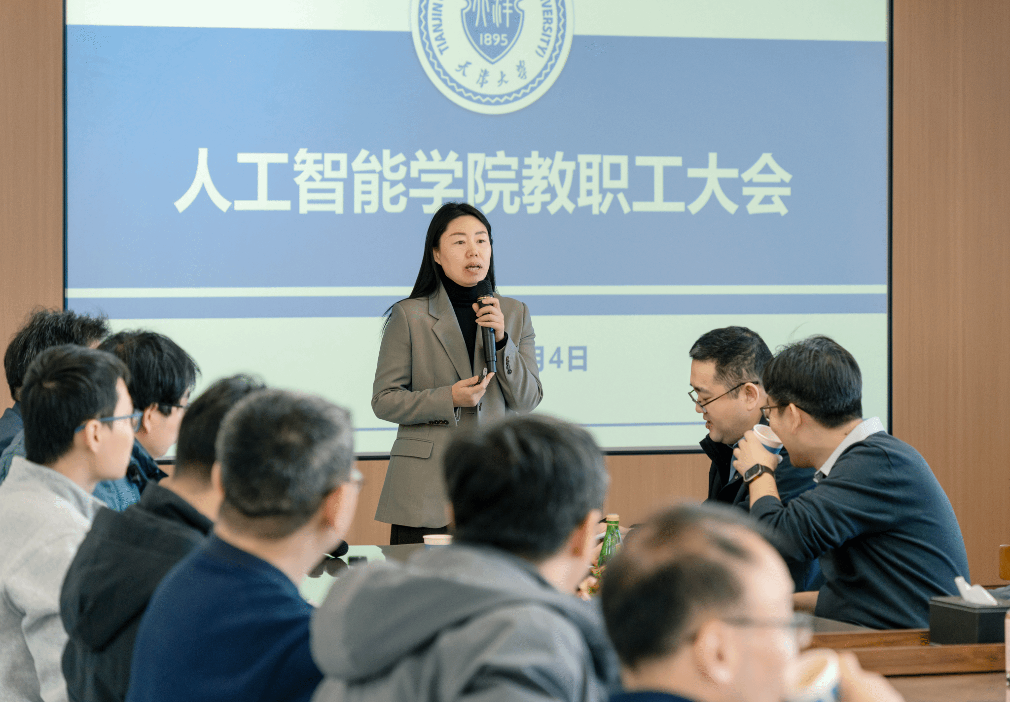 2025年12月4日,天津大学人工智能学院第一次教职工大会在北洋园校区55教顺利召开。学院党委书记王赞及领导班子成员、教职工们齐聚一堂,会议由学院党委副书记、副院长赵娜主持。大会紧扣学院独立运行新阶段的发展定位,将学习贯彻习近平总书记重要回信精神与落实学校《加快推动天津大学人工智能学院建设的若干措施》相结合,明确发展方向、凝聚奋进力量。