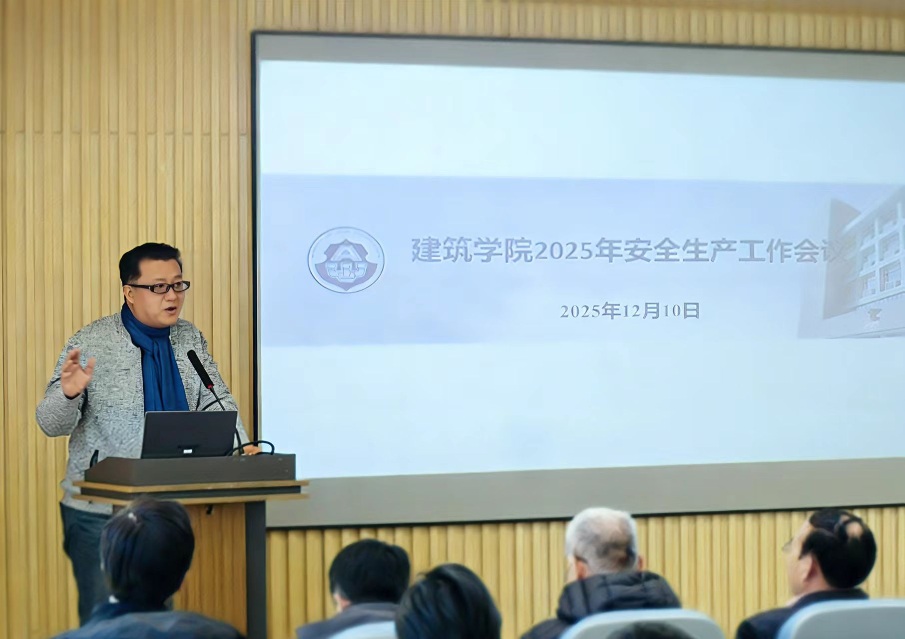 、办公场景的安全责任清单,严格落实“事事有人管、人人有专责”的管理机制,坚决推动安全责任制从纸上条款真正落到实际行动中。副院长王开以“构建严密体系、压实末端责任,推动学院消防安全工作规范化运行”为主题,汇报了2025年建筑学院安全生产工作。
