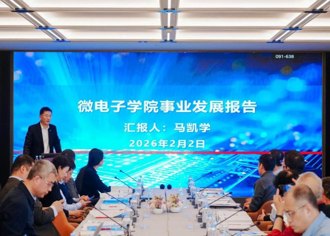 本站讯岁序更迭,华章日新。2026年2月2日,微电子学院召开学院事业发展论坛,系统总结2025年及“十四五”工作成效,全面部署“十五五”重点任务,为学院未来五年的高质量发展擘画蓝图。天津大学发展规划处副处长张立迁、教务处副处长宋春风应邀出席大会,微电子学院班子成员、退休教师代表以及全体教工参加会议。会议由党委副书记韩旭主持。