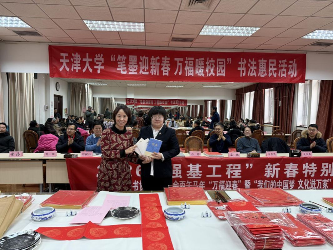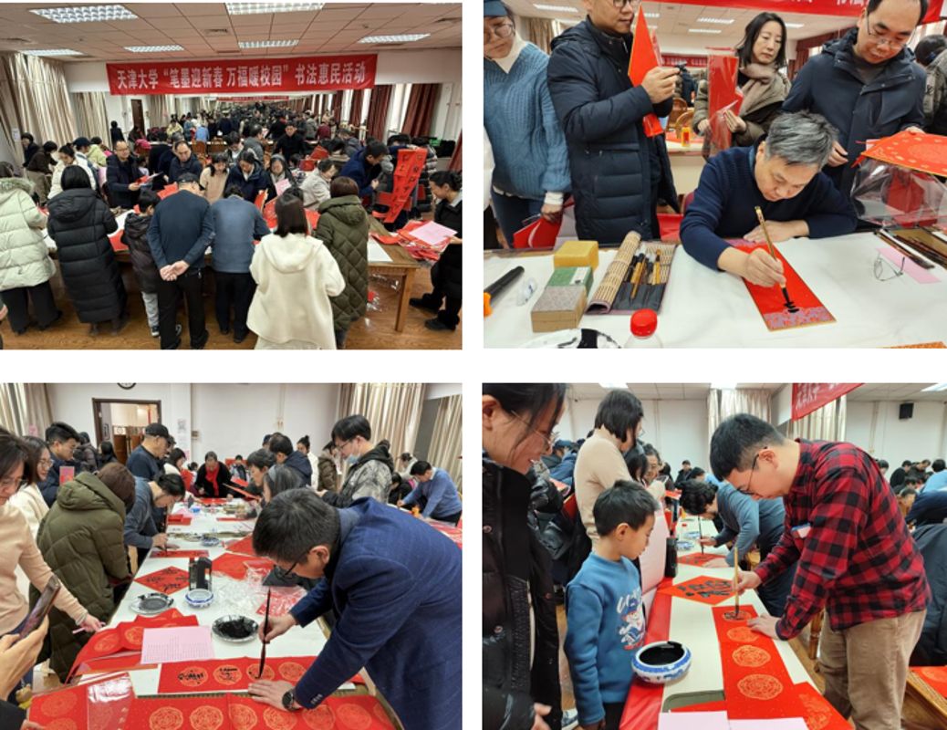 为迎接2026丙午马年新春,1月30日,天津大学工会联合人文艺术学院工会、天津市书协教育委员会,在卫津路校区教职工文化活动中心举办“笔墨迎新春 万福暖校园”书法惠民活动,为教职工送上新春祝福。