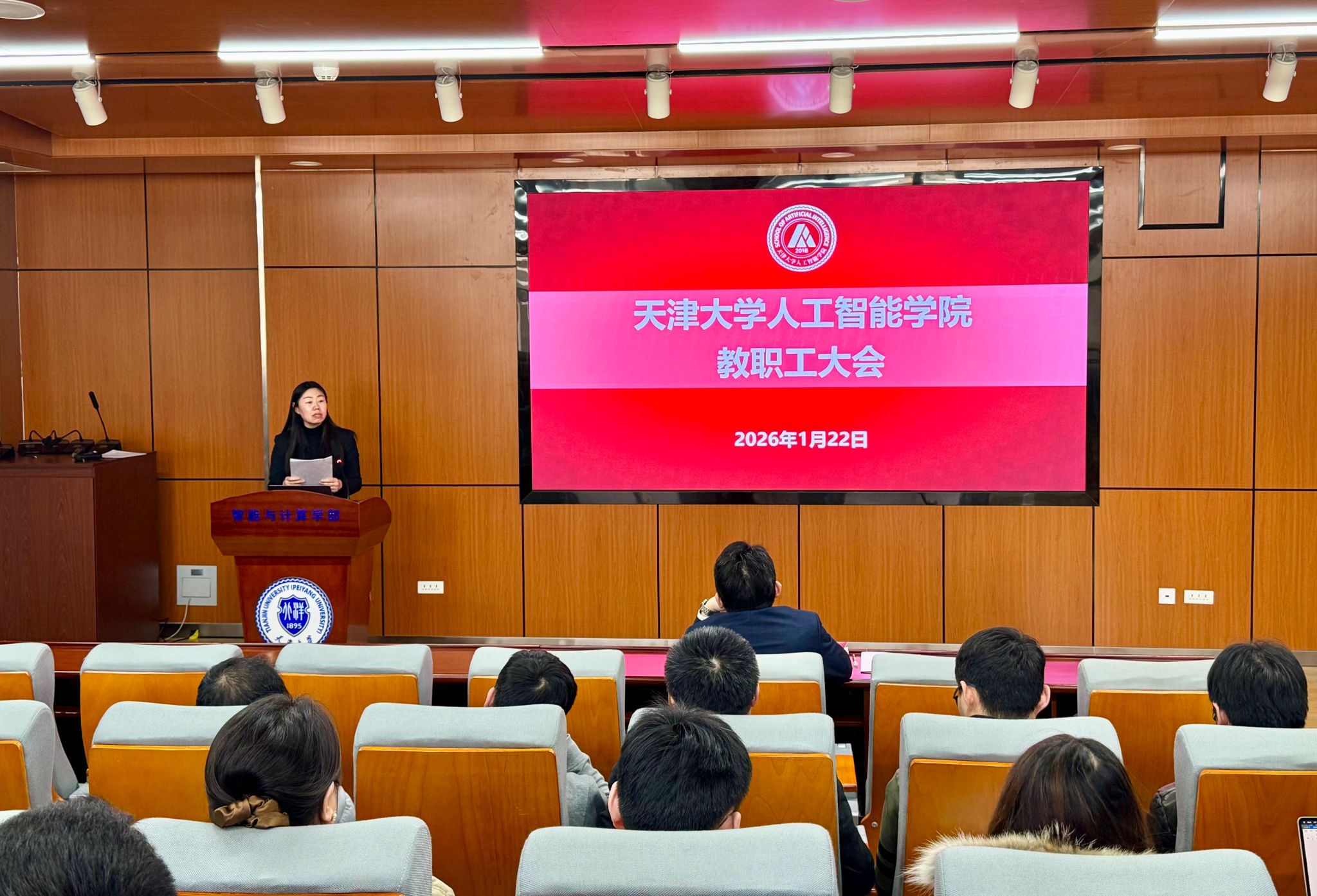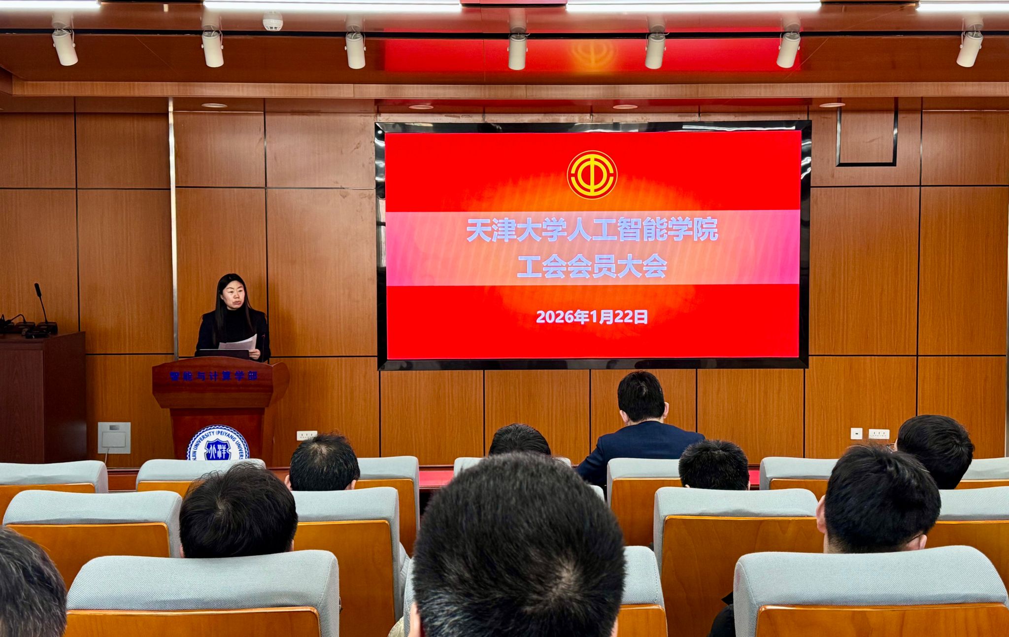 1月22日,天津大学人工智能学院第一届第一次工会会员大会、第一届第一次教职工大会在北洋园校区55教B204会议室先后召开。学院党委书记王赞及30余名教职工参会,会议由学院党委副书记、工会筹备组组长赵娜主持。