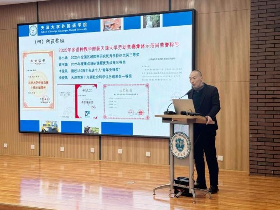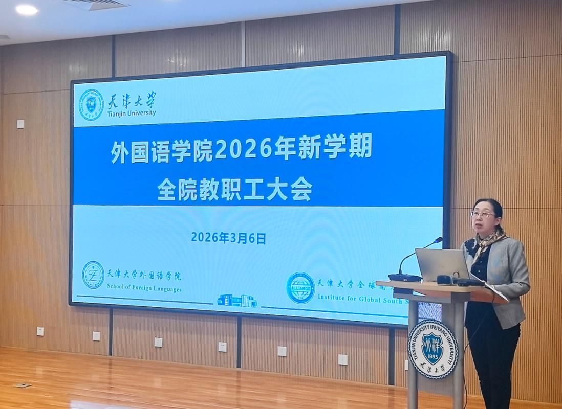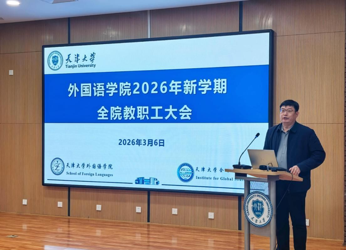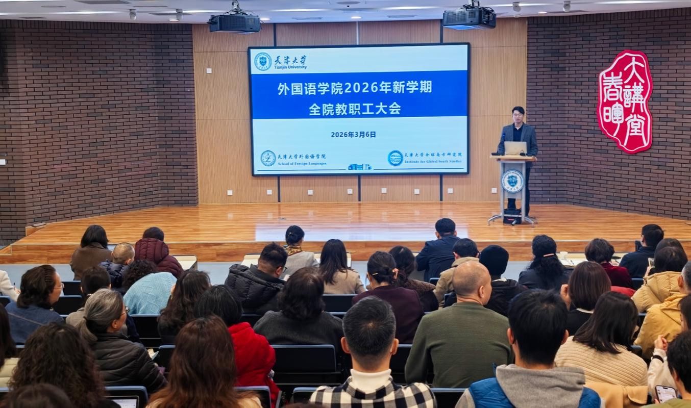 为全面总结2025年工作成效,科学部署2026年重点任务,凝聚全院教职工奋进合力,3月6日,外国语学院召开2026年新学期全院教职工大会。学院领导班子、全体教职工参加会议,会议由副院长刘家骥主持。