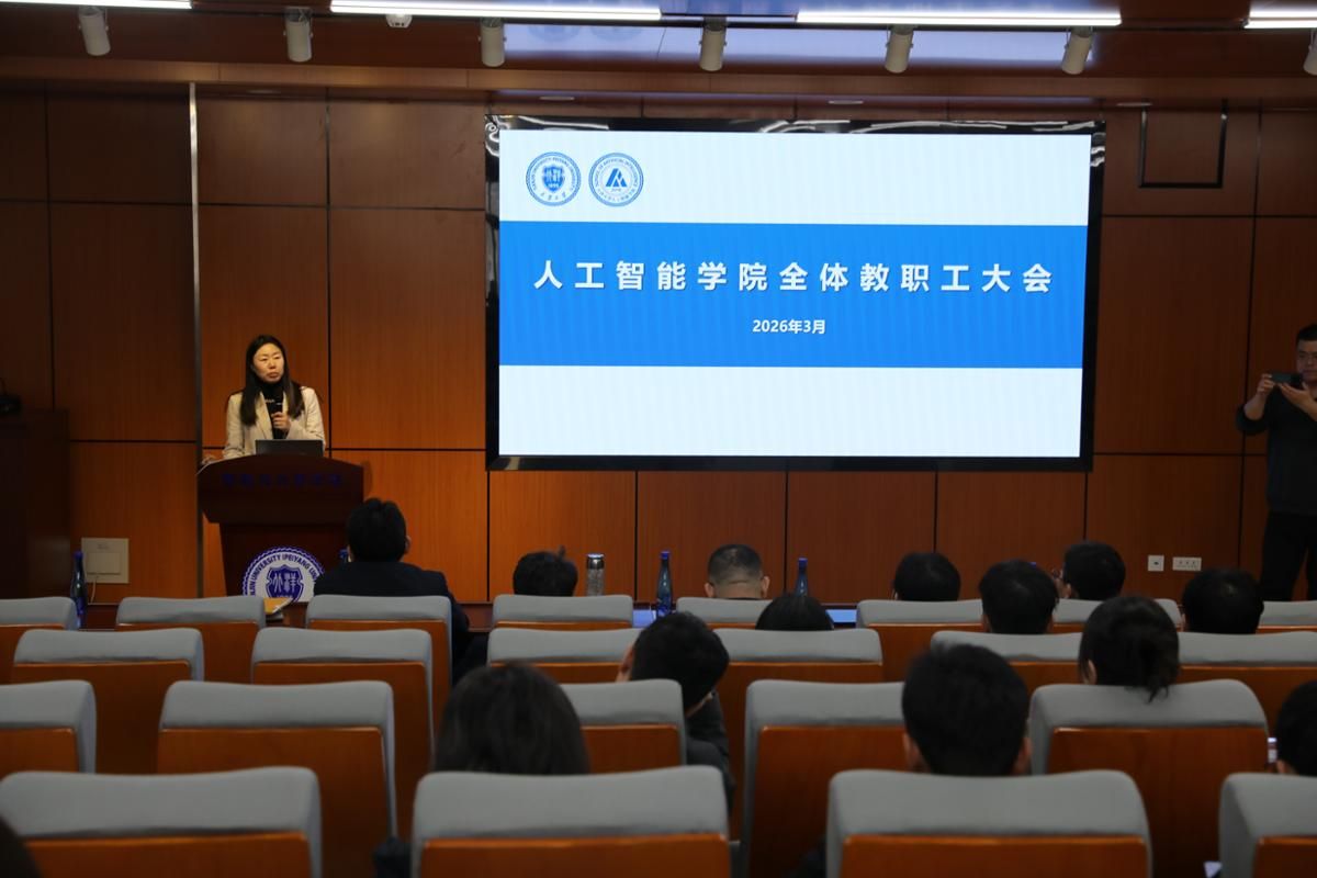 3月13日下午,天津大学人工智能学院2026年新学期教职工大会在55教学楼B204召开。学院全体班子成员、全体教职工和学生代表参会,教务处副处长宋春风受邀参会并作报告。会议由学院党委副书记赵娜主持。