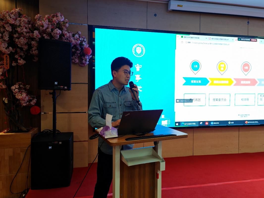 校工会郑浩详细介绍了学校教代会提案工作的具体流程。他从提案征集、提案立案审核、提案流转、提案办理答复、满意度调查五个阶段进行了全面讲解,并对提案系统的操作流程进行了重点解读。