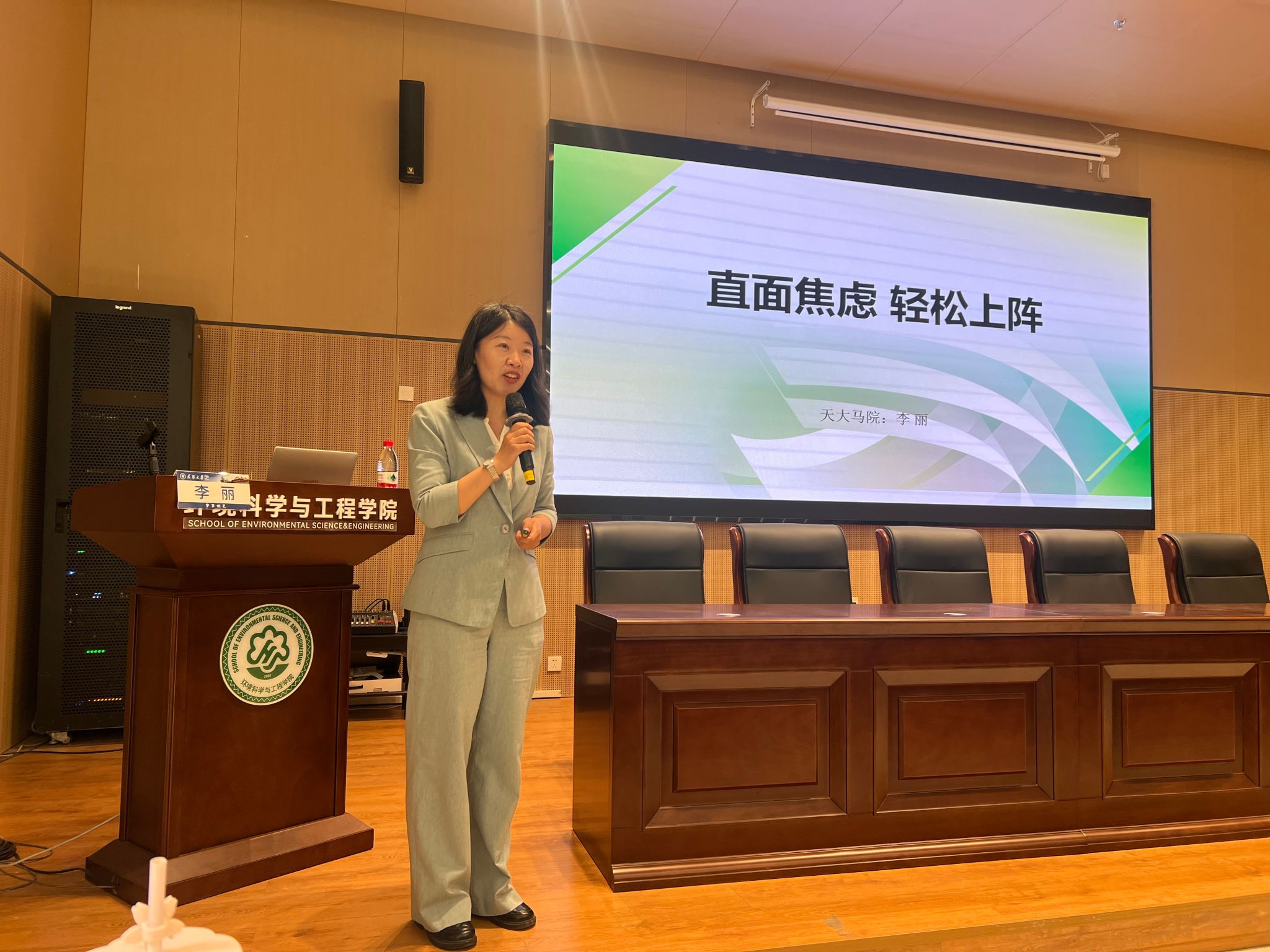 本站讯(通讯员 胡宏远)5月29日,环境学院党委举办第十五期思政大讲堂,邀请天津大学马克思主义学院李丽副教授作题为《直面焦虑,轻松上阵》的专题辅导报告。环境学院青年教师和学生齐聚一堂,开启了一场充实而有意义的减压之旅。报告会由环境学院党委书记杜云飞主持。
